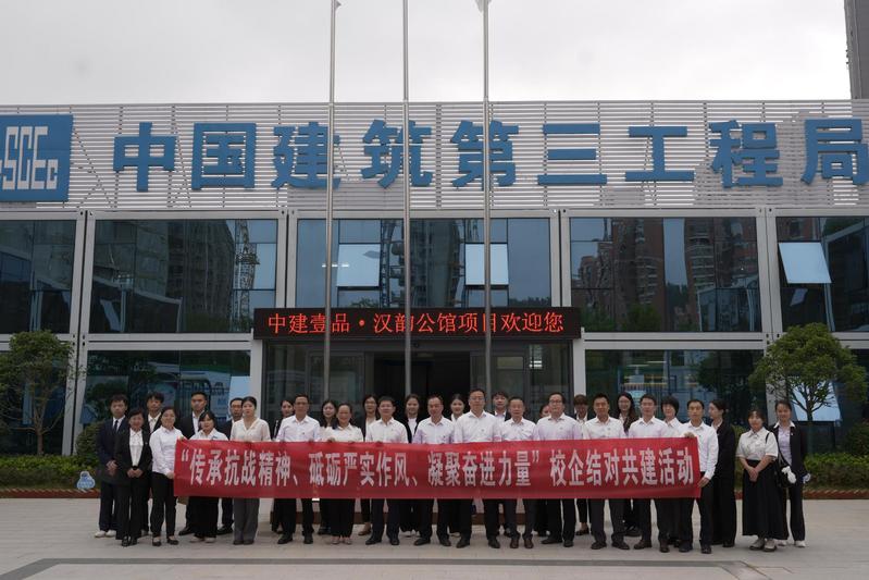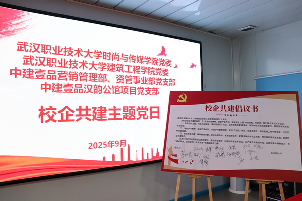 (通讯员 曹欣悦)金秋九月,风清气正。9月25日,武汉职业技术大学时尚与传媒学院、建筑工程学院携手中建壹品投资发展有限公司,在其项目部举办校企共建主题党日活动。校党委组织部部长陈绍华,两个学院党员师生代表与企业党员近40人齐聚一堂,以“传承抗战精神、砥砺严实作风、凝聚奋进力量”为主题,搭建校企协同育人桥梁。