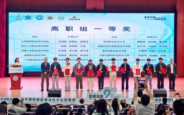智能建造作为新一代信息技术与工业化建造技术深度融合形成的人机协同建造方式,是建筑行业转型升级的核心引擎。武汉职业技术大学三支代表队获得优异成绩,是对学校教育教学改革成果的一次检阅。建筑工程学院相关负责人表示,将继续深化产教融合和校企合作,紧跟行业技术发展前沿,坚持“以赛促教、以赛促学、以赛促改”,注重学生复合型技能培养,为国家建筑行业数字化、智能化转型输送更多优秀技术技能人才。(通讯员:张姗姗)