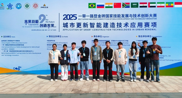 11月23日,2025年一带一路暨金砖国家技能发展与技术创新大赛城市更新智能建造技术应用赛项总决赛在广州落幕。武汉职业技术大学三支代表队在专业教师陈竣、高家祯、周一鹏、陈俭勇、张姗姗共同指导下,凭借出色的团队协作斩获佳绩,其中罗绪明、程锦阳、潘昱如团队荣获高职组一等奖,吴锐杰、陈雨欣、李润泽团队,李昊霖、李智勇、操太军团队同获高职组二等奖。