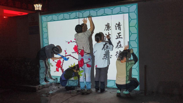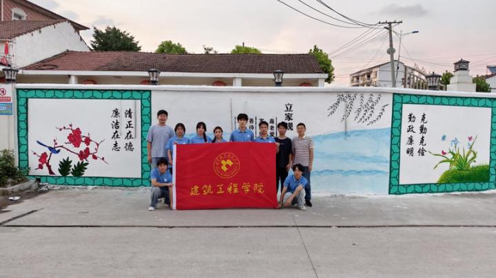 立足专业所长,深耕基层一线。“砼”心筑梦志愿服务队始终秉持“把专业课堂搬到乡村地头”的理念,将在校所学的专业技能转化为服务乡村的实际效能。在新洲区军民村,9名队员历时7天攻坚克难,让原本斑驳破旧的26.68平方米墙面,蜕变为11.6米×2.3米的“清正廉洁”主题文化墙。墙面之上,廉政故事与安全知识通过生动构图、鲜明色彩娓娓道来,既让村路环境更显通透整洁,更打造出一部“可移动、可感知的廉教课本”,让文明理念如春风化雨般浸润民心,让墙面成为村民共学共悟的“红色精神驿站”,助力乡风文明。