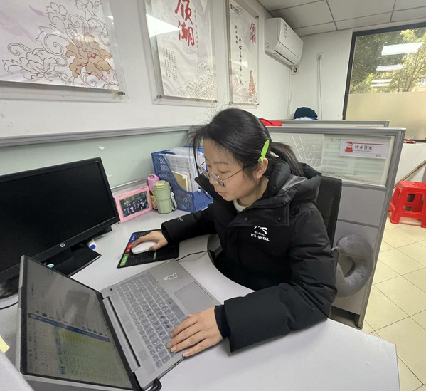 武汉市万科物业服务有限公司长城坐标城项目部、物业22301班孟亚楠在岗位上忙碌
